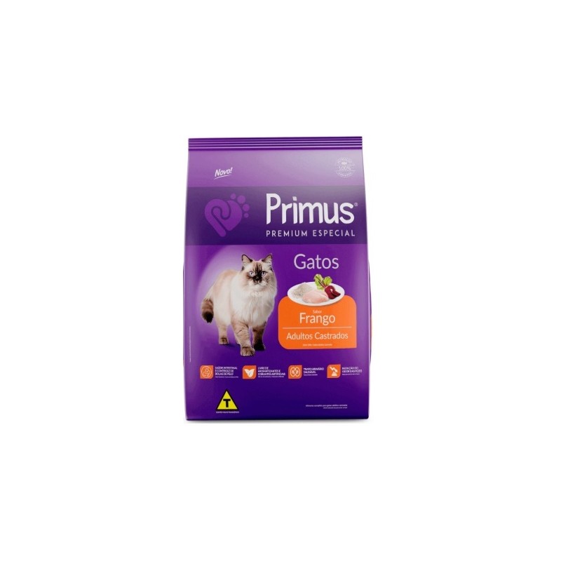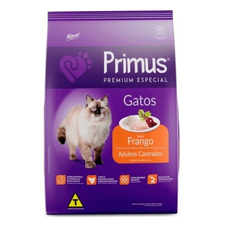 PRIMUS PREMIUM ESPECIAL GATOS CASTRADOS FRANGO é um alimento completo, desenvolvido especialmente para o seu gato.